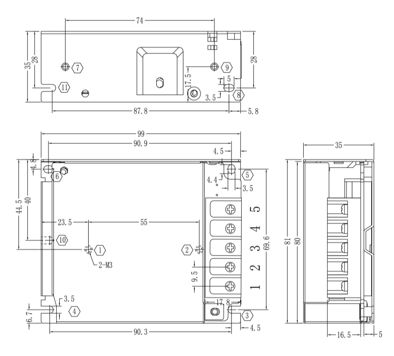 單路開關(guān)電源安裝尺寸及接線: