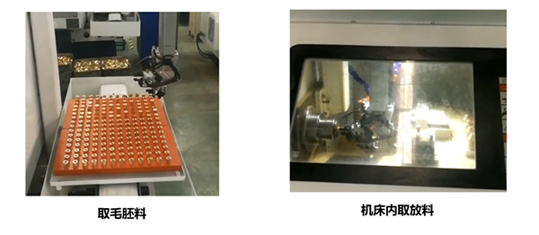 毛坯料盤上料——機械手在料盤取原料——原料二次定位——機械手左(右)待機——進左(右)機床取成品——機械手放原料——機械手在料盤放成品——料盤下料(成品放滿)依次循環。