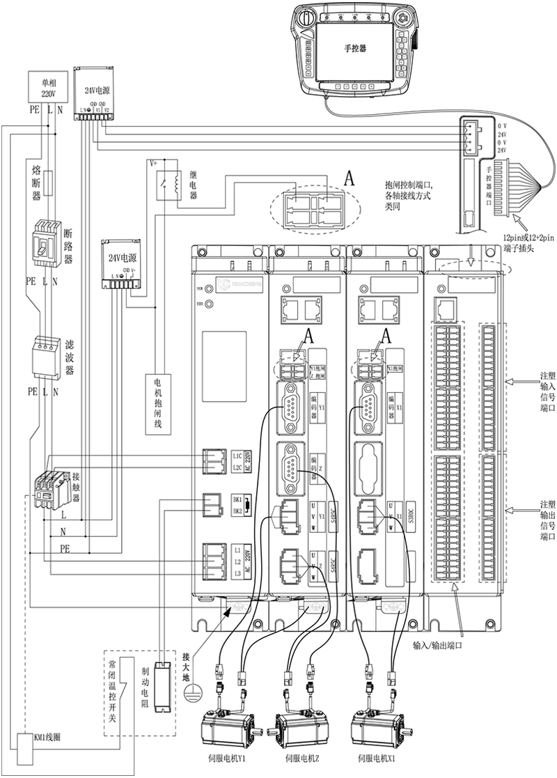 三軸注塑驅(qū)控一體化機(jī)械手控制系統(tǒng)-EC-S3,箱體整體外觀接線說明: