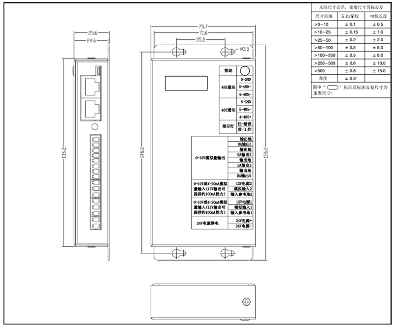 0-10V或4-20mA模擬量輸入(12V輸出可提供約100mA能力)